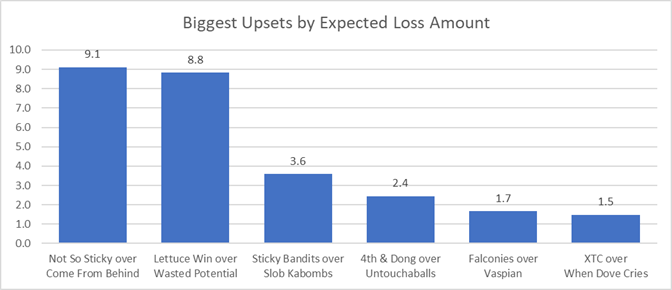 Wasted Potential vs Lettuce Win (+13) – Lettuce Win isn’t quite there yet to compete with the tippy top of the division. WASTED POTENTIAL BY 13
