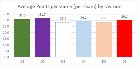 Our long-time readers know that we like to include charts and graphs at the end of our Power Rankings showing how our teams stack up against each other. The most efficient way to look at the WHOLE picture of team performance (strength of schedule and attendance quirks aside) is average point differential per game. In other words, by how many points are you winning (or losing) games by on average?
