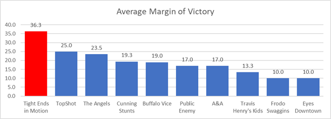 Tight Ends in Motion could not have imagined a better start to their season. Still undefeated, still the #1 offense in the TSL, still the #1 defense in the TSL, and still (obviously) the #1 point differential in the TSL, all while playing in D1. In fact let's pause to look at their dominance graphically:
